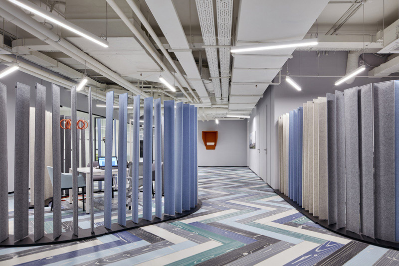 以現(xiàn)代風(fēng)的手法打造富有現(xiàn)代韻味的主基調(diào),無論是從材質(zhì)還是色調(diào)上不失穩(wěn)重,突顯企業(yè)實力。通過一些設(shè)計亮點和材質(zhì)變化讓這個大空間富有節(jié)奏感,又富有變化性。