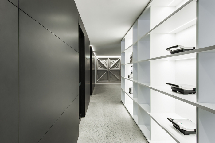 ? ? 家具折疊,顯示臺(tái)和架子都是移動(dòng)的工作場(chǎng)所的靈活性進(jìn)一步支持由一個(gè)智能音頻視覺系統(tǒng)。當(dāng)你通過工作場(chǎng)所的活動(dòng)測(cè)試廚房和工程領(lǐng)域已被納入在一般辦公區(qū)內(nèi)的每個(gè)品牌類別。這些都是直接連接到合作的“貓走”的設(shè)計(jì),特別是讓產(chǎn)品設(shè)計(jì)人員,技術(shù)工程師和食品技術(shù)人員共同努力,產(chǎn)品開發(fā)。這樣的方式來規(guī)劃新的布雷維爾和允許球隊(duì)之間的異花授粉和傳播。該工作場(chǎng)所包括一個(gè)廣泛的模型車間附件原型,消防和生命測(cè)試實(shí)驗(yàn)室和3D打印室。