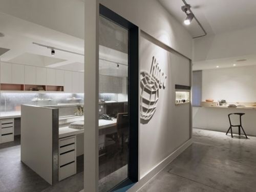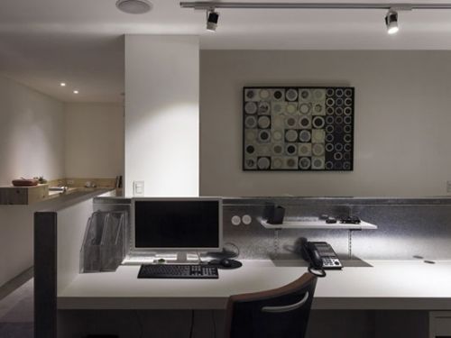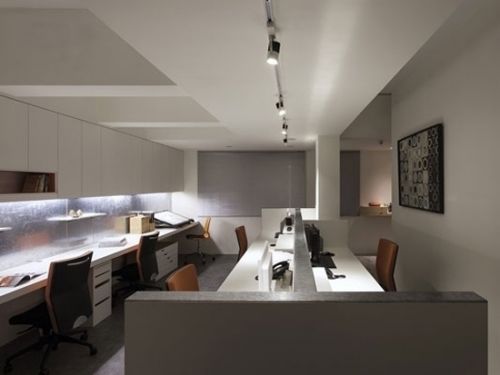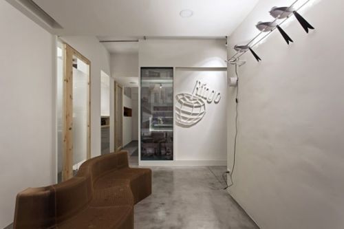 編輯點(diǎn)評(píng):辦公室入口的面積相對(duì)較小,設(shè)計(jì)師很巧妙地采用矩形瓷磚、并且在末端采用深色瓷磚進(jìn)行裝飾,顯出放射狀,有放大視覺效果的功能。