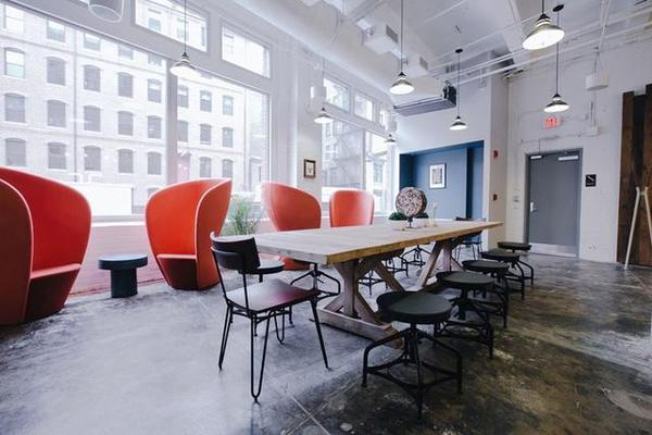 上海辦公室裝修設計公司-領企裝飾今天要與大家分享的是,美國波士頓WeWork的辦公室裝修設計。其辦公室自身散發(fā)著獨特的工業(yè)風特質:高聳的梁架天花、堅固的粗壯的柱子以及斑駁的水泥地面。WeWork占據(jù)這幢九層磚混建筑的五個樓層。巨大的玻璃外窗,讓陽光自由傾瀉入繽紛多彩的公共區(qū)域。位于后部的開放辦公區(qū),人們可以將塞岬海峽的美景一覽無余。地下室的休閑區(qū)類似一個運動吧,經(jīng)過一天的緊張工作,人們可以在此盡情放松享受快樂時光。