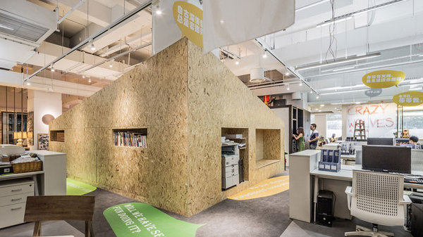 辦公區(qū)域的設(shè)計(jì),設(shè)計(jì)師將奇思妙想融入空間,交流區(qū)域的背部被設(shè)計(jì)師開(kāi)發(fā)出各式各樣的洞口,為的就是安置辦公設(shè)備,以此滿足辦公需求,真可謂是創(chuàng)意無(wú)限。
