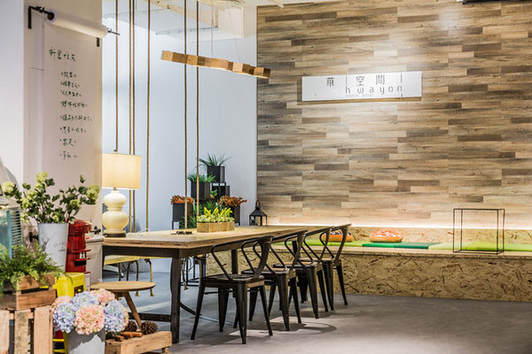 會(huì)議室的設(shè)計(jì),三塊玻璃隔斷加上彩繪,既有效的隔離出會(huì)議空間,又節(jié)約成本,同時(shí)與空間相互融合。