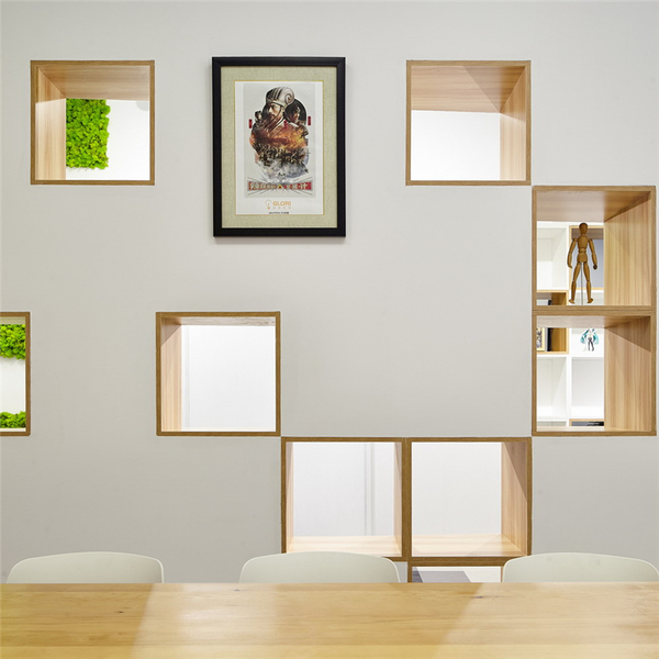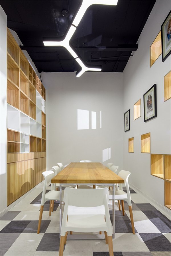 作為舊辦公室翻新設(shè)計,設(shè)計師首先通過調(diào)整辦公室格局、整合自然光與人工光源,一掃之前的沉悶和陰暗,有效提升了空間的舒適度。周圍的小型辦公室后移,與放大后的中央辦公區(qū)域進行光源共享,同時將白色作為底色,引入南側(cè)窗外的自然光,加之屋頂?shù)腨型吊燈、射燈等立體的人造光,大面積的辦公空間被瞬間點亮,整個辦公室明朗通透,舒適宜人。