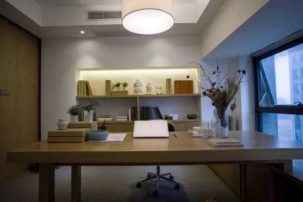 本案中式辦公室設(shè)計(jì)以素雅簡(jiǎn)單為主,使用單一簡(jiǎn)單的木飾材料與白色墻面形成對(duì)比增加空間的層次感,空間大量采用留白的手法,插入些造型細(xì)節(jié),讓立面顯得干凈而又不會(huì)太過蒼白單調(diào),再用暖色燈光中和白色墻面的冷,使整個(gè)空間看上去非常的溫馨干凈。