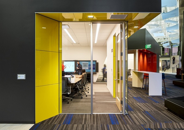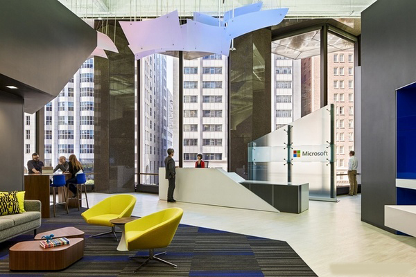 今天,上海辦公室裝修設(shè)計(jì)公司-領(lǐng)企裝飾要與大家分享的是,微軟集團(tuán)位于美國(guó)舊金山的辦公室裝修設(shè)計(jì)。辦公室的樓面計(jì)劃利用了視野和微軟公司的商標(biāo)來(lái)創(chuàng)造第一印象,既引人注目又能馬上被識(shí)別出來(lái)。目標(biāo)是在人、場(chǎng)地和技術(shù)之間創(chuàng)造一個(gè)平衡。通過(guò)創(chuàng)造一個(gè)展示逐日變化的技術(shù)的陳列室,建成空間和技術(shù)之間的區(qū)別變模糊了。微軟公司的產(chǎn)品變成了帶領(lǐng)訪客穿過(guò)這個(gè)空間的車輪。