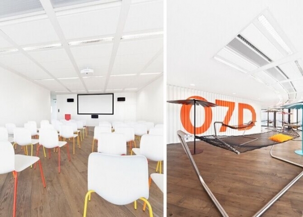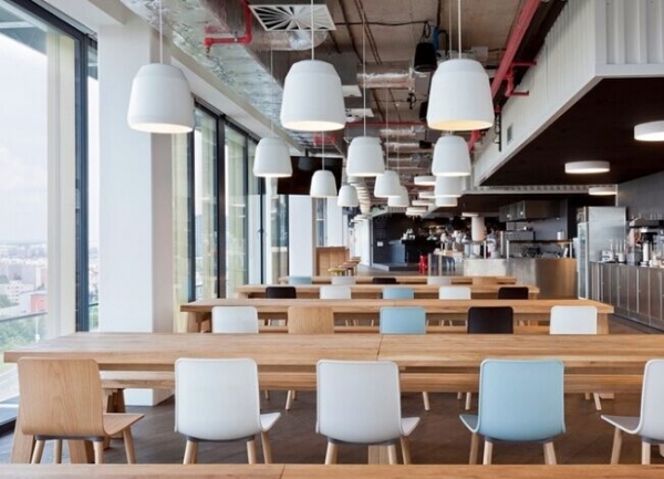 在Prague 辦公區(qū),我們會發(fā)現(xiàn)這里有一個私人的餐廳(其所需要的運(yùn)營成本,員工的花費(fèi)由公司負(fù)責(zé)),共設(shè)計(jì)有七層空間,修建了健身房、商店、錄音棚、游戲室、電影院、高爾夫球模擬器、圖書室、布置有吊床和遮陽傘的休息室。對于辦公區(qū)域而言,沒有標(biāo)準(zhǔn)化的建筑元素。