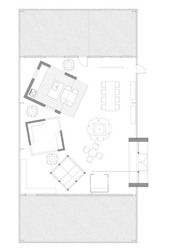 由ALTS Design Office設(shè)計(jì)的位于日本滋賀縣的Omihachiman新工作室,業(yè)主希望可以滿足不同的群體使用,同時(shí)尋找一個(gè)能夠令他們自由談話的工作室。設(shè)計(jì)者為室內(nèi)創(chuàng)建了四種“房子形狀”的位置,通過(guò)不同尺度的模塊形狀,適應(yīng)不同人群的社交空間。