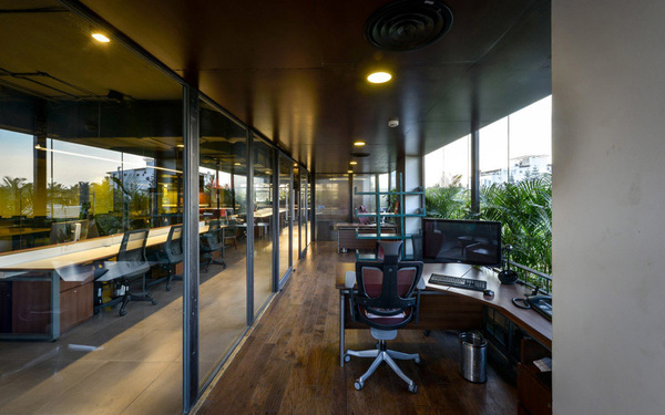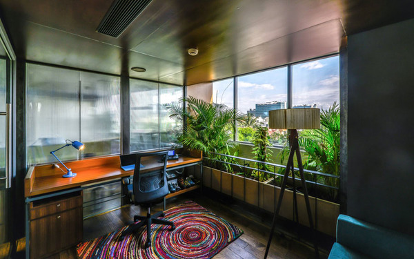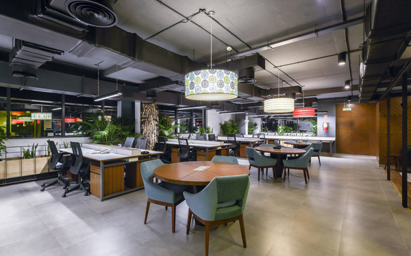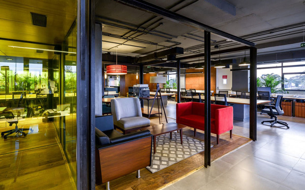 整體辦公室裝修設(shè)計(jì)以粗獷的大地色系配以隨處可見(jiàn)的綠色植物,營(yíng)造如在戶(hù)外探險(xiǎn)的氛圍,創(chuàng)建一個(gè)充滿(mǎn)活力的協(xié)作型工作環(huán)境。這些綠植和工位系統(tǒng)巧妙結(jié)合在一起,在長(zhǎng)時(shí)間的工作環(huán)境里,偶爾瞥見(jiàn)近旁的植物,給眼睛帶來(lái)片刻的舒緩和休息。同時(shí)這樣的氛圍營(yíng)造契合公司的品牌文化。有趣的設(shè)計(jì)元素,形成一個(gè)非常有趣的空間表達(dá)。更多辦公室裝修設(shè)計(jì)關(guān)注領(lǐng)企設(shè)計(jì):www.ddaaah.cn