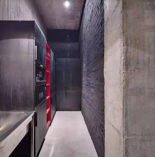裸露的水泥墻面和水管閥門,被很好的歸納起來(lái),成為了裝飾墻,綠色的塊毯成了一個(gè)亮點(diǎn)被掛在墻上,效果相當(dāng)棒