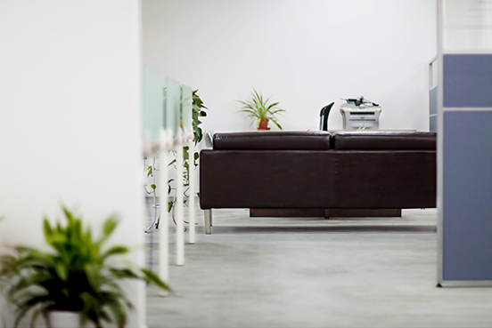 會客區(qū)的裝修亦是遵循簡約的辦公室裝修風(fēng)格,真皮沙發(fā)加上茶幾盆栽就構(gòu)成了一副合適的洽談場景,背景和吊頂非常普通,所以設(shè)計師將心思花在了綠植的裝飾作用上,用以點綴空間是一個不錯的主意。