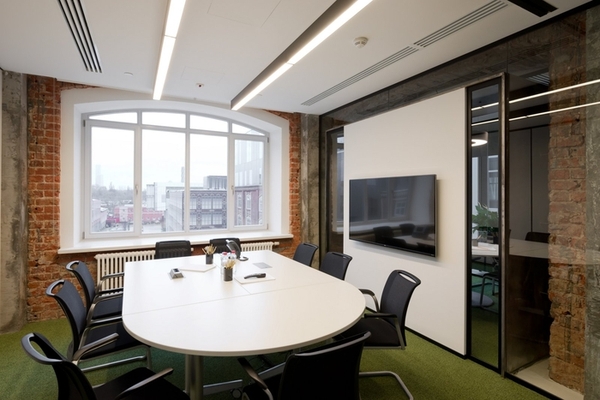 會議室設(shè)計可以根據(jù)對內(nèi)或?qū)ν獠煌枨筮M(jìn)行平面位置分布。按照人數(shù)則可分為大會議室、中型會議室和小會議室。常規(guī)以會議桌為核心的會議室人均額定面積為0.8平,無會議桌或者課堂式座位排列的會議空間中人均所占面積應(yīng)為1.8平。會議室兼顧了對外與客戶溝通和對內(nèi)召開機構(gòu)大型會議雙重功能,基本配置有投影屏幕、寫字板、儲藏柜、遮光等。在強弱電設(shè)計上,地面及墻面應(yīng)預(yù)留足夠數(shù)量的插座、網(wǎng)線;燈光應(yīng)分路控制或為可調(diào)節(jié)光。根據(jù)客戶的要求考慮應(yīng)設(shè)麥克風(fēng)、視頻會議系統(tǒng)等特殊功能。