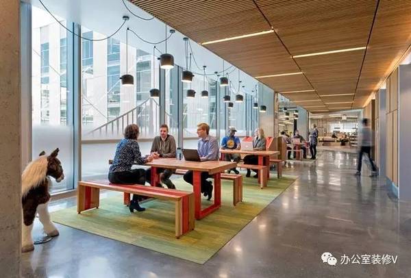 設計團隊將舊金山的城市格局與企業(yè)的品牌元素相結(jié)合,以街景式平面布局創(chuàng)建出一條條寬廣的大道,營造出休閑舒適的都市氛圍。