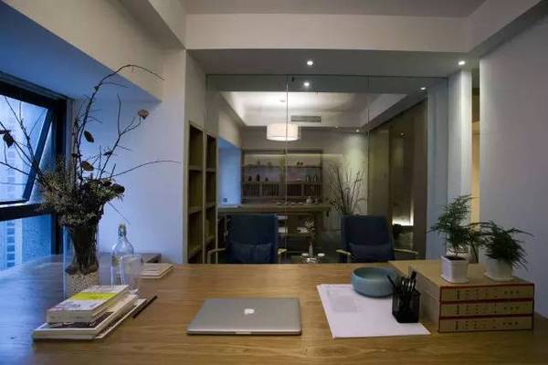 本案中式辦公室設(shè)計(jì)以素雅簡(jiǎn)單為主,使用單一簡(jiǎn)單的木飾材料與白色墻面形成對(duì)比增加空間的層次感,空間大量采用留白的手法,插入些造型細(xì)節(jié),讓立面顯得干凈而又不會(huì)太過蒼白單調(diào),再用暖色燈光中和白色墻面的冷,使整個(gè)空間看上去非常的溫馨干凈。