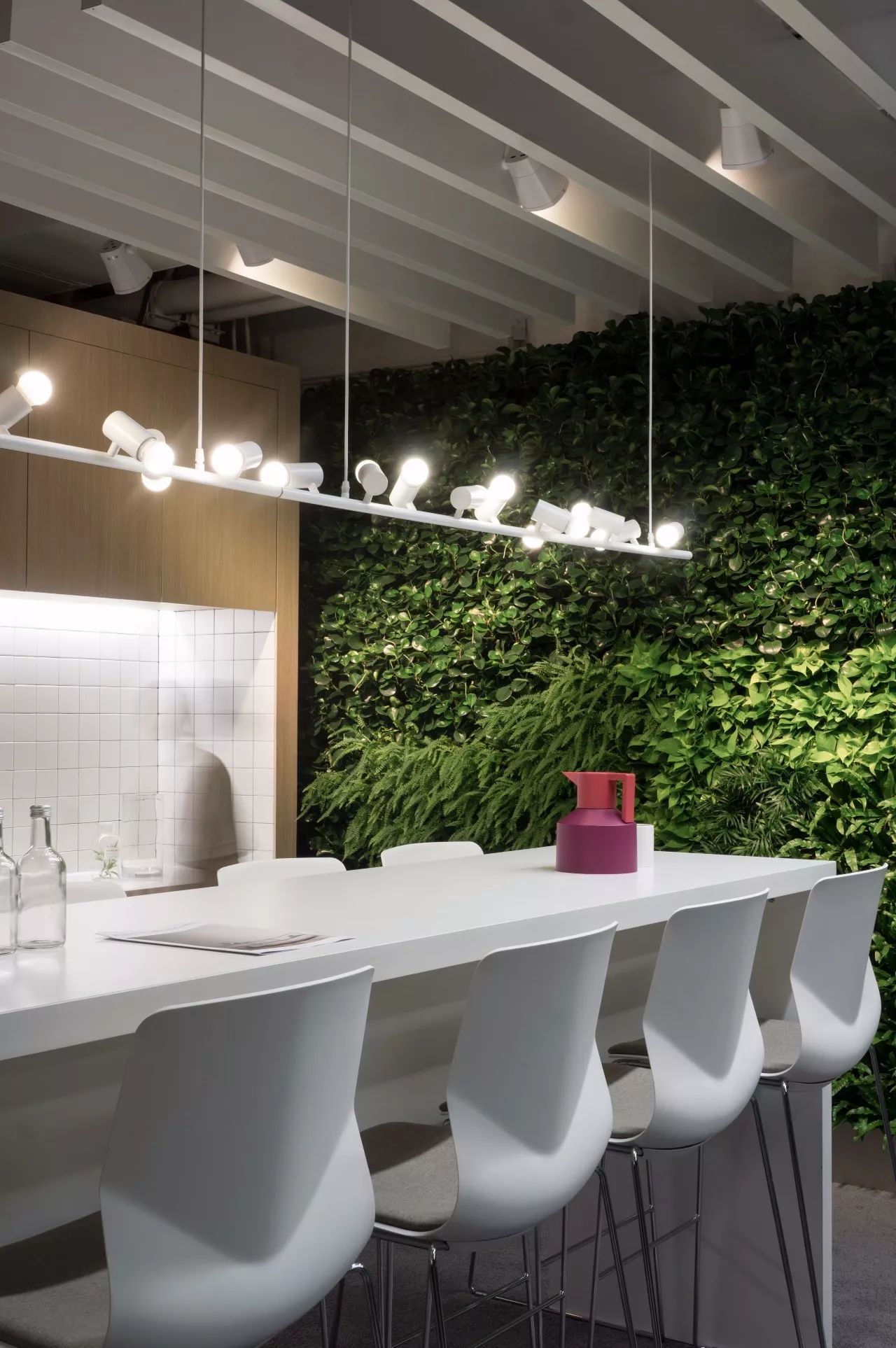 為了弱化傳統(tǒng)辦公室的緊張氛圍,公共休閑區(qū)配置了特別大的面積,包括大面積的垂直綠化墻、廚房及水吧。成為員工聚會(huì)、休息,或工作交流、頭腦風(fēng)暴的聚集地。模塊化的沙發(fā),能實(shí)現(xiàn)多變的組合方式,以及滿足員工360度全方位的無(wú)障礙溝通。