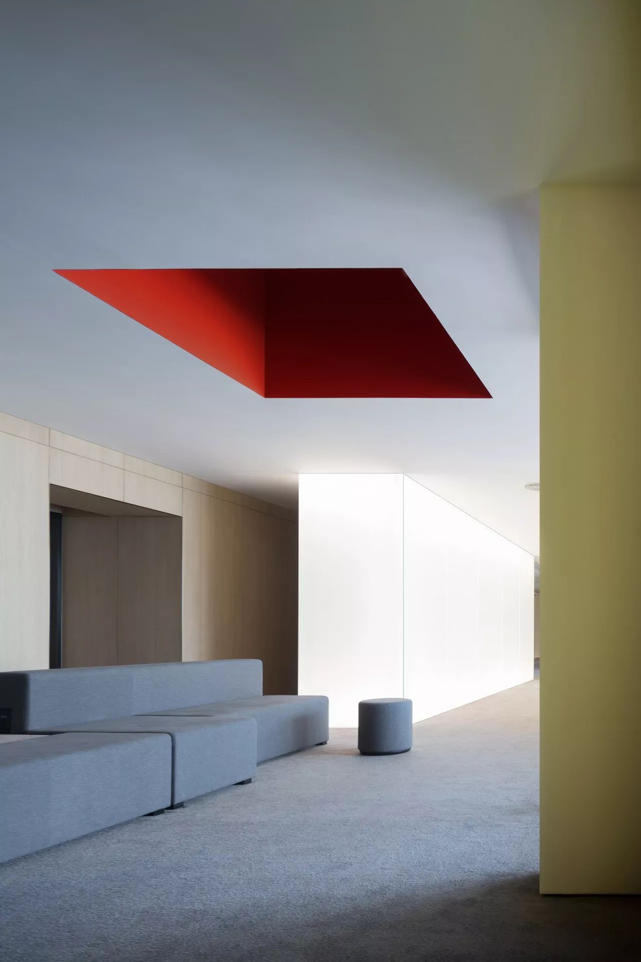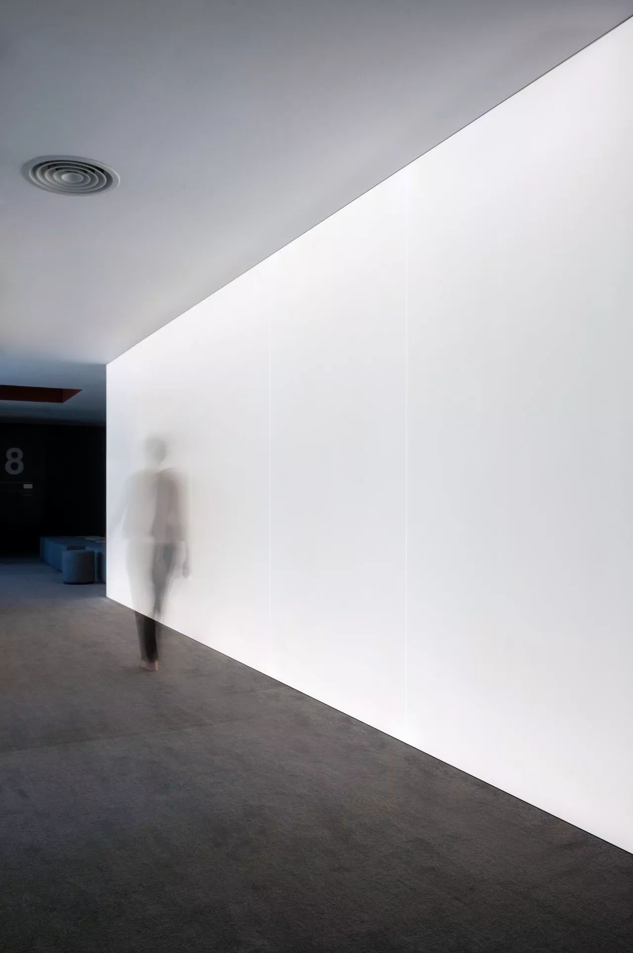 會(huì)務(wù)中心層的發(fā)光玻璃墻,滿足了整個(gè)空間的照明,同時(shí)又成為空間的視覺核心,營(yíng)造出純粹、安靜、脫俗的藝術(shù)辦公空間氛圍。