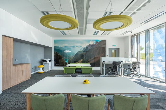 5、富有自然氣息的軟件公司辦公室設(shè)計(jì):辦公設(shè)計(jì)團(tuán)隊(duì)設(shè)計(jì)了三個(gè)可以午休的小空間,配以遮光門簾和床墊。秘密在床墊下,這里配置了重量傳感器,如果有人躺在上面,傳感器就會(huì)迅速響應(yīng)并將信號(hào)傳輸至指示燈——ZZZ字母燈就會(huì)亮起,表示此窩已有人占領(lǐng)。 該案辦公室裝修廣泛應(yīng)用環(huán)保建材和天然木材,并在各類休息區(qū)域營造戶外的自然氛圍,以開放的設(shè)計(jì)令室內(nèi)擁有充足的自然光照,這種親生物的設(shè)計(jì)表達(dá)為員工創(chuàng)建了一個(gè)工作與生活平衡的正能量環(huán)境,將他們的空間體驗(yàn)和工作效率提升到更高的水平。