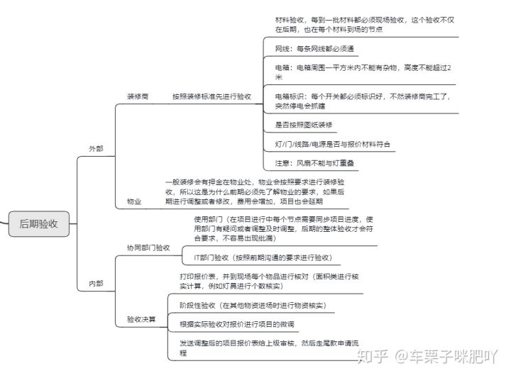 外部溝通主要以物業(yè)溝通和供應(yīng)商溝通為主,首先接觸的是物業(yè),為了方便大家閱讀,先放一張圖這里需要提醒的是,除了常規(guī)的租賃場(chǎng)地信息的溝通及談判外,對(duì)于物業(yè)的裝修細(xì)節(jié)提前溝通過(guò)了解非常重要,什么可做,什么不可以做,以免裝修好了,物業(yè)驗(yàn)收不合格要修正,這個(gè)是非常麻煩的,對(duì)于這些信息的把握也是對(duì)于風(fēng)險(xiǎn)的提前規(guī)避。