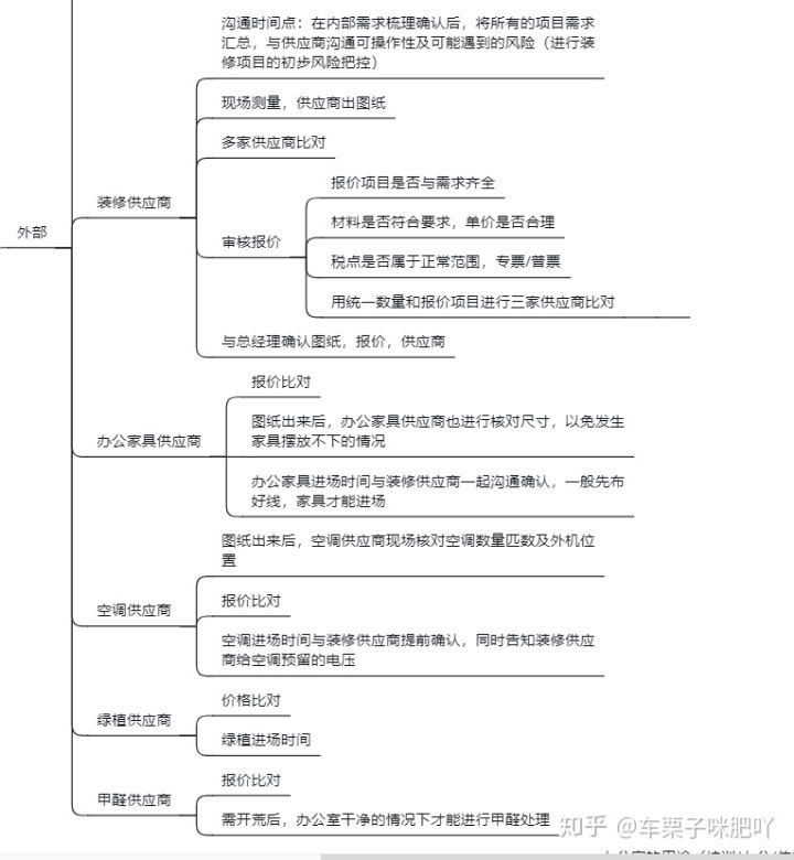 裝修項(xiàng)目需要對(duì)接的供應(yīng)商可不止是裝修公司哦,還有涉及整個(gè)項(xiàng)目的辦公家具,綠植,甲醛,空調(diào)等統(tǒng)籌,對(duì)于不同供應(yīng)商需要注意的事宜,咱們也備注好了哈,大家多多留意哈(另外,需要說(shuō)明的是,任何項(xiàng)目管理,靠譜的供應(yīng)商能給你省很多心,血與淚的教訓(xùn):供應(yīng)商的選擇一定要靠譜!靠譜!靠譜!