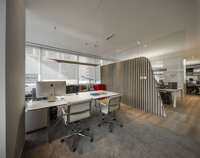 此外,自定義的燈掛在整個(gè)辦公室,可以根據(jù)*終用戶個(gè)性化。設(shè)計(jì)師整合背后隱藏的門廚房。由于沒有窗戶,它的內(nèi)部被設(shè)計(jì)成一個(gè)小咖啡店,考慮到一個(gè)溫暖的氣氛(在墻上的瓷磚,鵝卵石地板磚,更經(jīng)典的廚房單元,咖啡桌)??傮w而言,這個(gè)項(xiàng)目已經(jīng)取得了一個(gè)正確的平衡空間,材料和功能,考慮到的挑戰(zhàn),其結(jié)果正是客戶所期待的:一個(gè)友好的工作環(huán)境與觸摸的“哇效果”的游客。